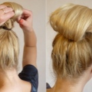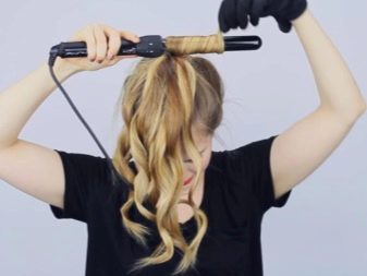 - The tips must be screwed curling iron, having previously collected a bundle of hair at the crown. Sprinkle the tail with varnish and bouffant.