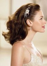 Large curls of curls, gently leaving on the side, complemented by unusual hairpins with bright luster, due to which the styling is ideally combined with any evening dress.