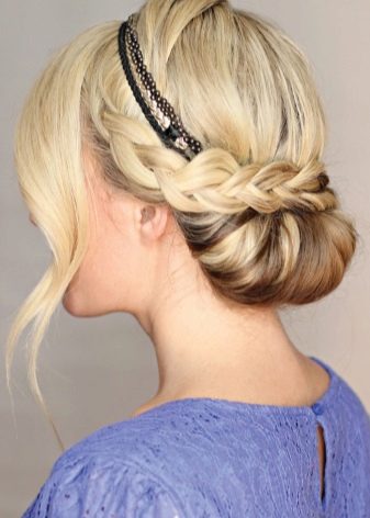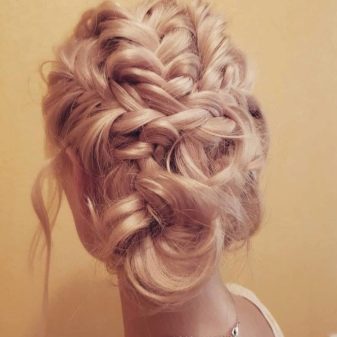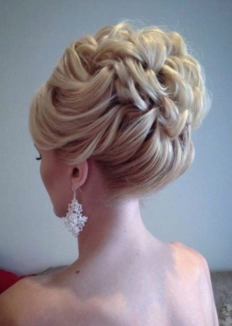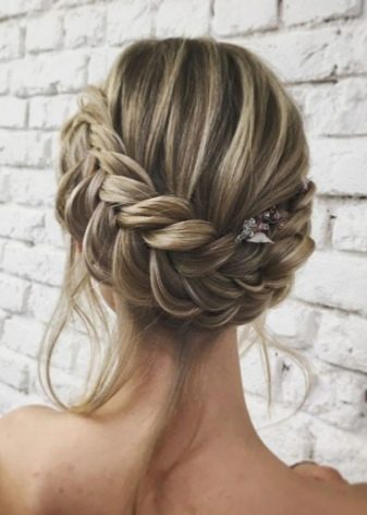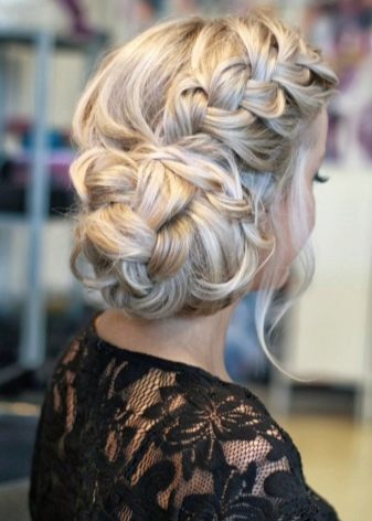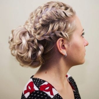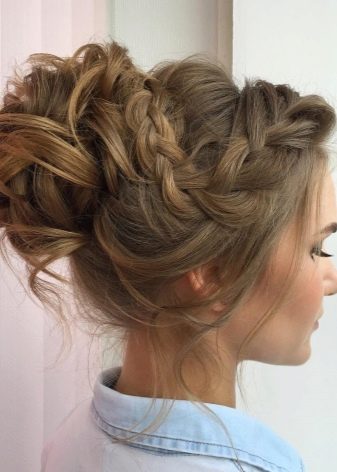 Quite bright and spectacular look. high styling which are based on the French braid, laid on the entire circumference of the head. Fashion stylists argue that such hairstyles frame the oval of the face, emphasizing all its advantages, and hide flaws. If necessary, they soften the sharp and rough features.