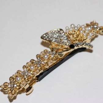 Some women prefer to decorate hairstyles with various long-barrettes with rhinestones and sparkles. This accessory is perfect for the evening dress, which has hints of shine.