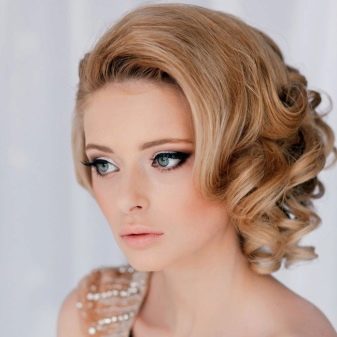 Festive image can not do without a special hairstyle. Owners of medium hair will have to make quite a difficult choice, as a huge variety of styling can make the fair sex be confused. Basically, stylists offer quick-performed romantic curls, or Greek style. You can use the intricate weaving of a spikelet or a bunch of retro style, complemented by a spectacular pile. The main thing is to remember that the style of the chosen hairstyle should fully and completely correspond to the prepared dress.