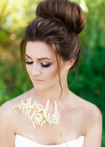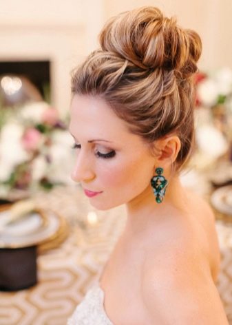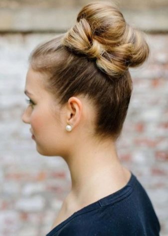 But even this trendy stylists do not stop. As a variety of offer to perform on the hair of medium length hairstyles with a high beam. On the one hand, the name of the styling may slightly scare away, but the finished result is majestic, sophisticated and aesthetic. The selected image does not overload, but is complemented by magnificence and brightness.