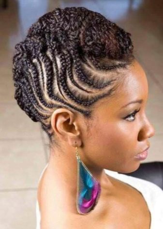 African styling will give the female image boldness and emancipation. It will emphasize all the advantages, hide the flaws, emphasize the expressiveness of the eyes and, in general, attract the enthusiastic views of the fans.