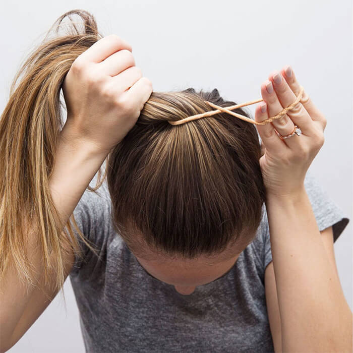- Hair must be combed, gathered at the top of the tail, but not much tighten.