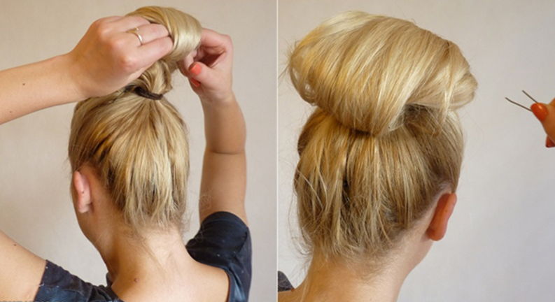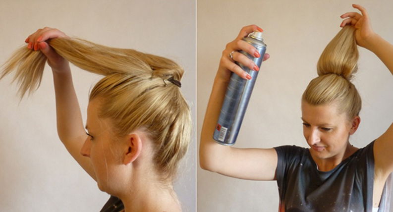 - The prepared tail rises to the top and is fixed by an invisible one, which should be positioned just above the elastic band. To slightly secure the design, hair must be sprayed with varnish.