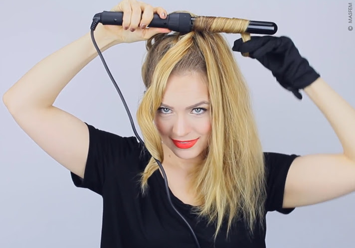- The curler should be held vertically, screwed a mousse-treated curl on it, hold it for about 7 seconds, then remove the tool.