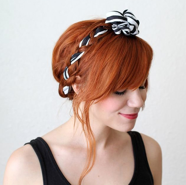 - Ready hairstyle fixed varnish. A ribbon is tied over it as an ornament.