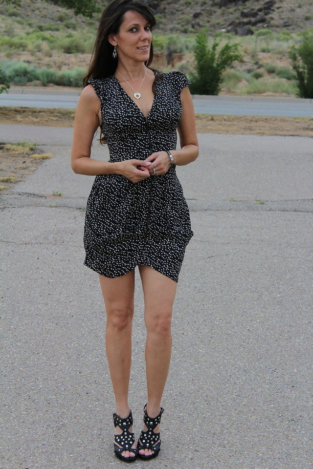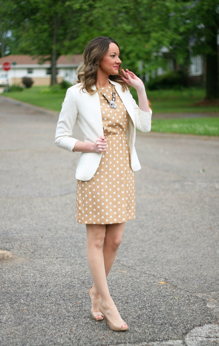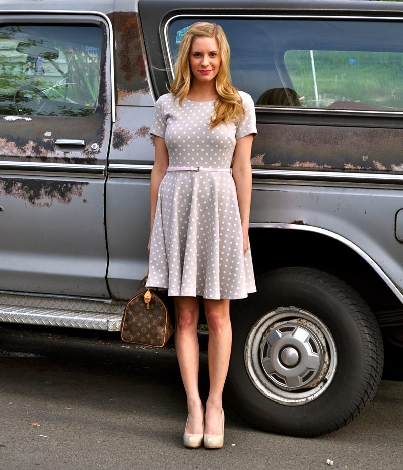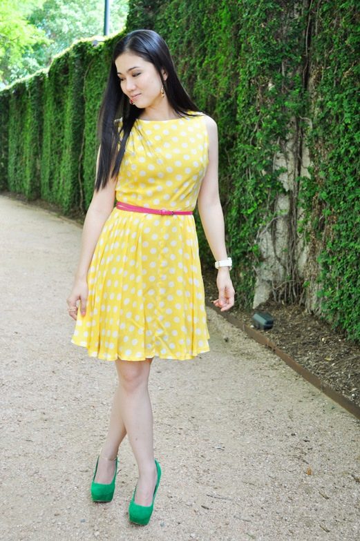 Polka dot dresses are so playful and feminine! I love this print. I used to pay more attention to black and white versions, but now I just fell in love with the peas on the blue.