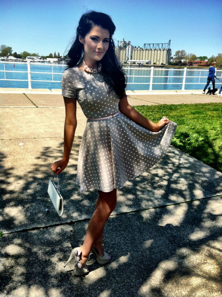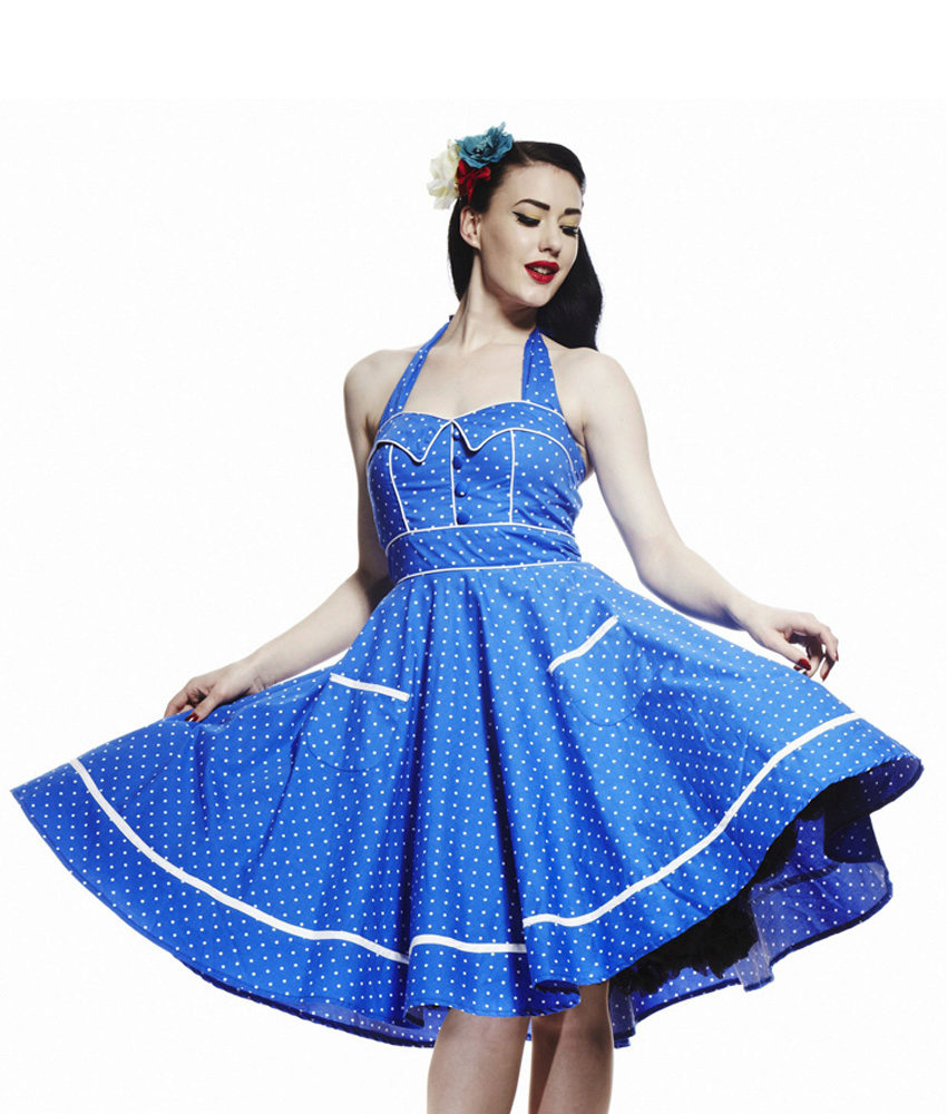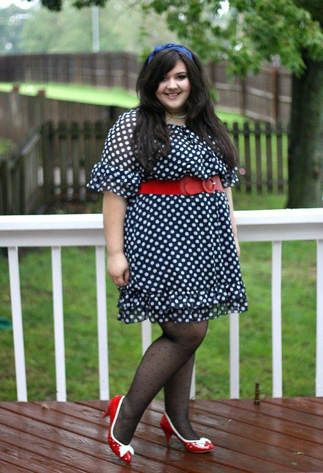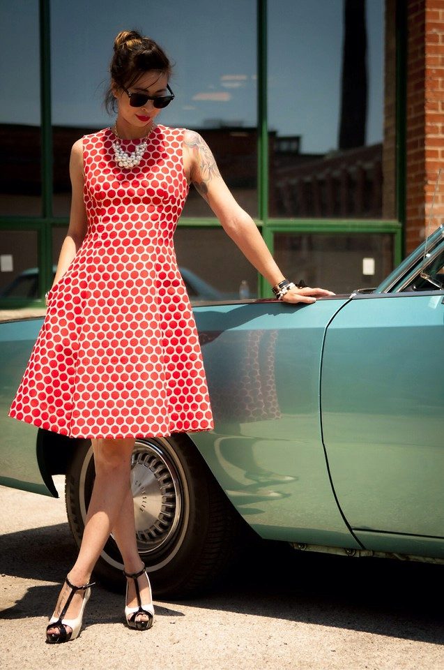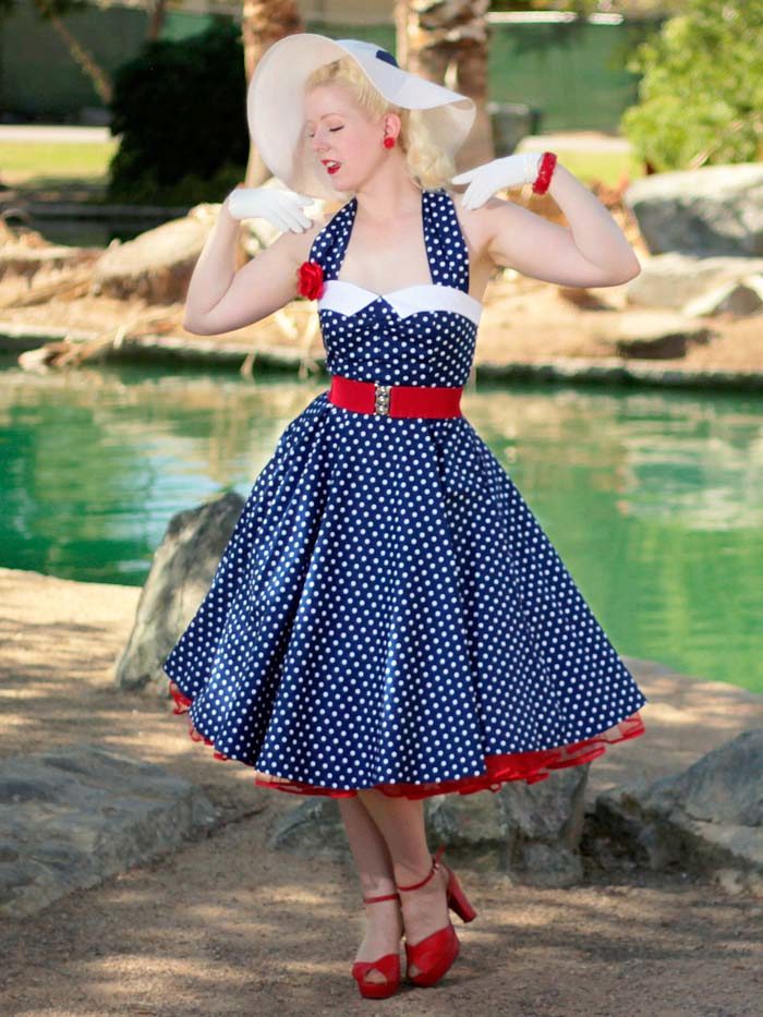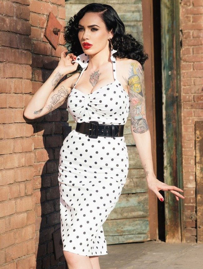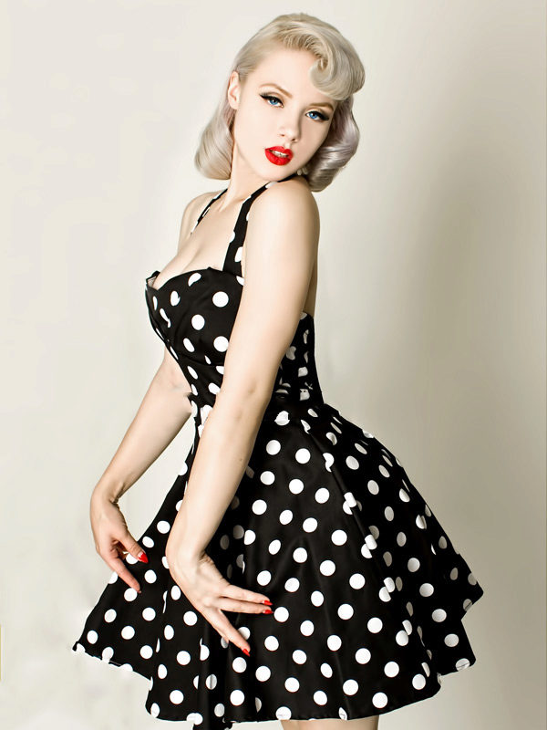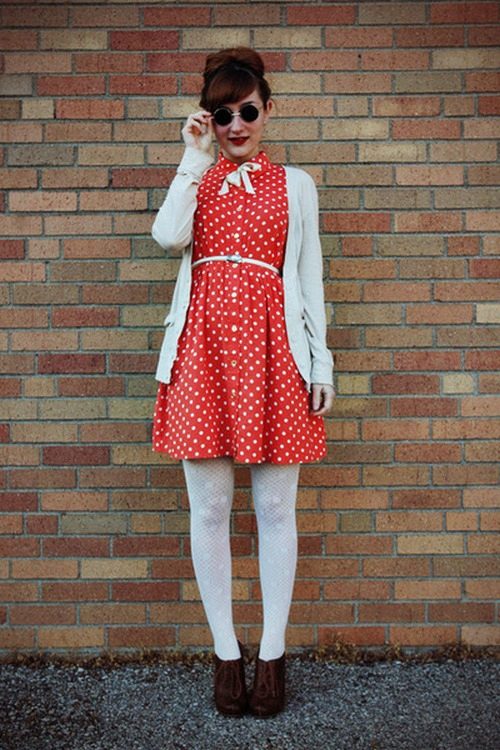 If you want to get a sophisticated retro look, a polka-dot dress will be one of the most successful options. For a retro bow, pick up a black and white outfit with a fluffy skirt, wear pumps, a white belt and white gloves to it. Red lipstick and high hair will help make this look complete.
