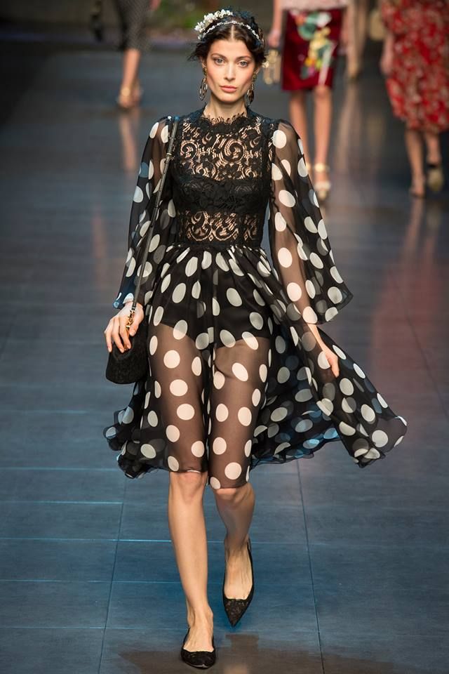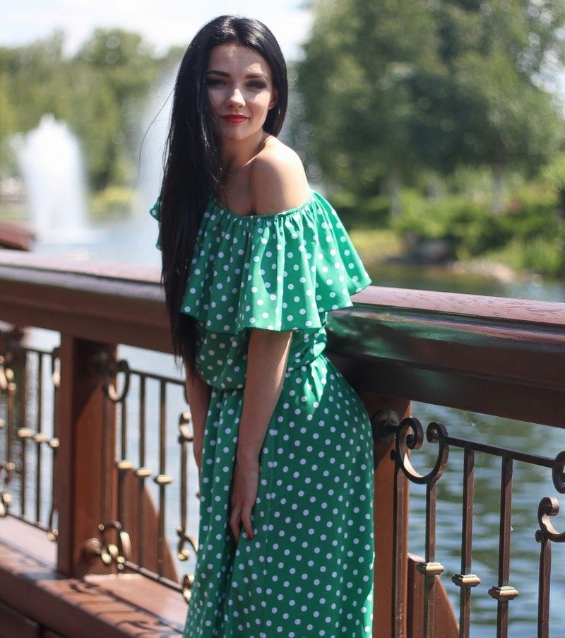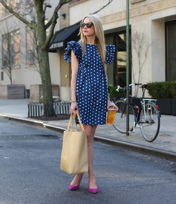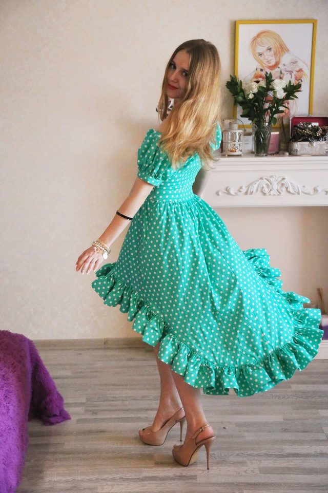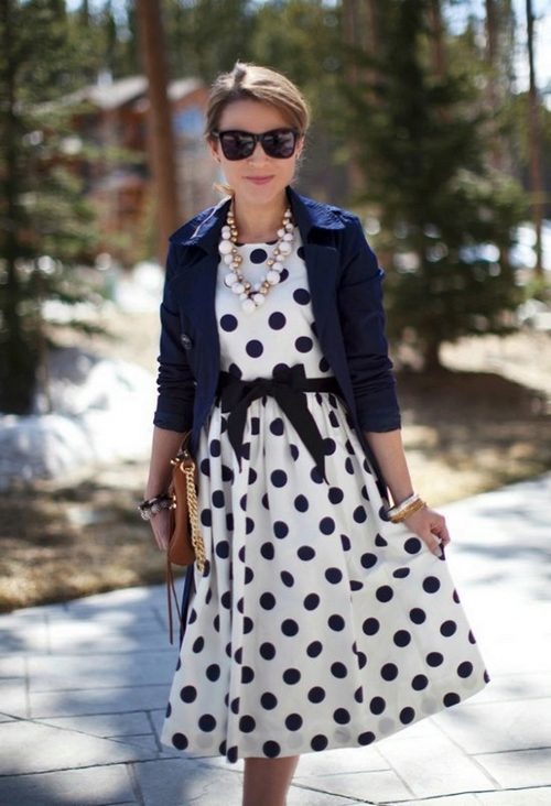 Pea print is considered feminine and elegant. Dresses in peas do not lose their relevance for many years, allowing you to create a modern and retro image.