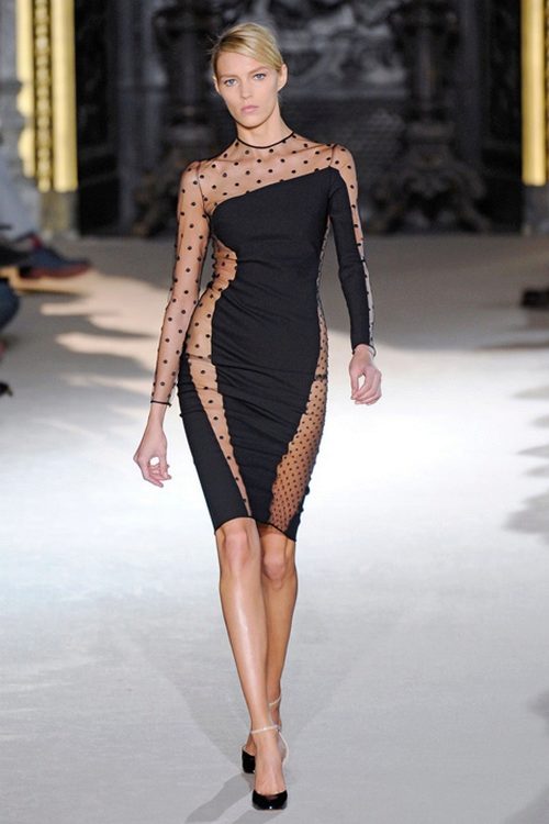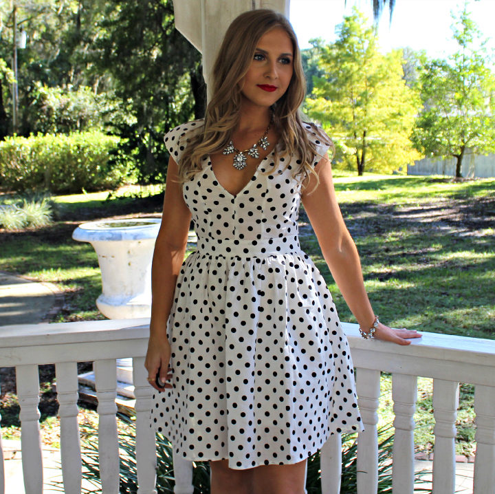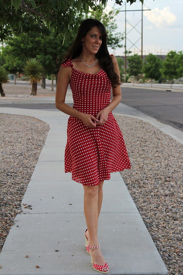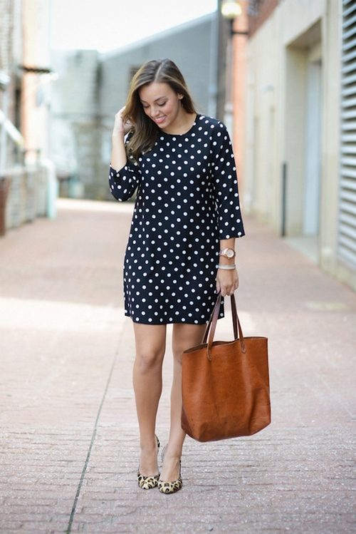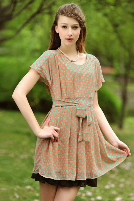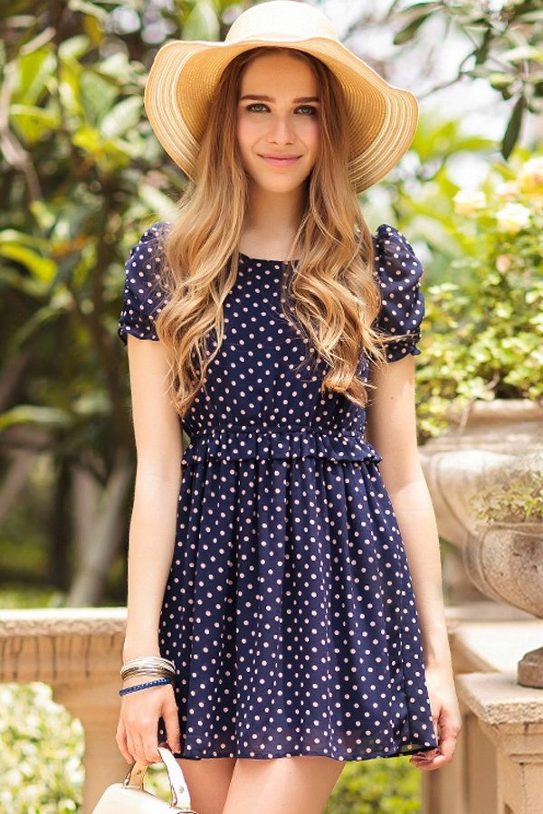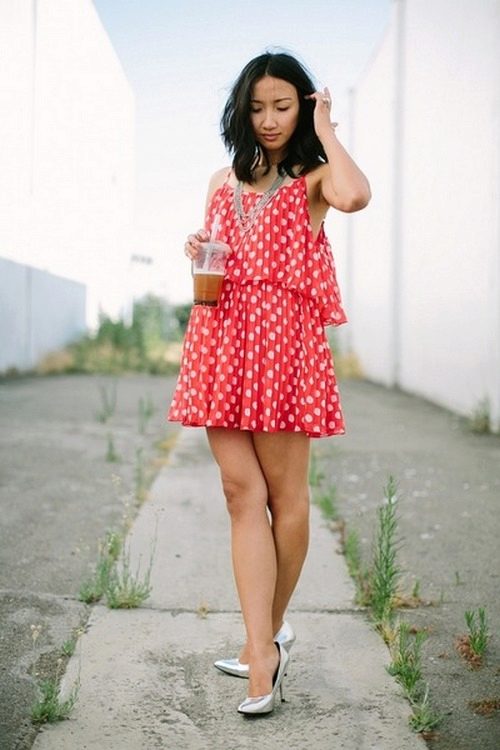 - If you have a thin waist, pick a fitted model of a dress with polka dots, which will help to focus on this part of your figure.