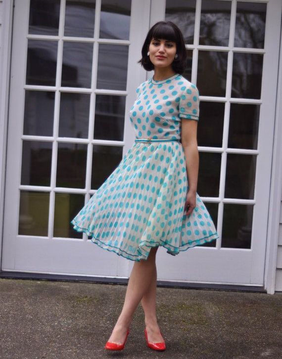 Polka dot dresses are very diverse. They can differ both in a style, and the size of peas and color combinations. It is possible to choose a suitable pea outfit for any shape and for any occasion.