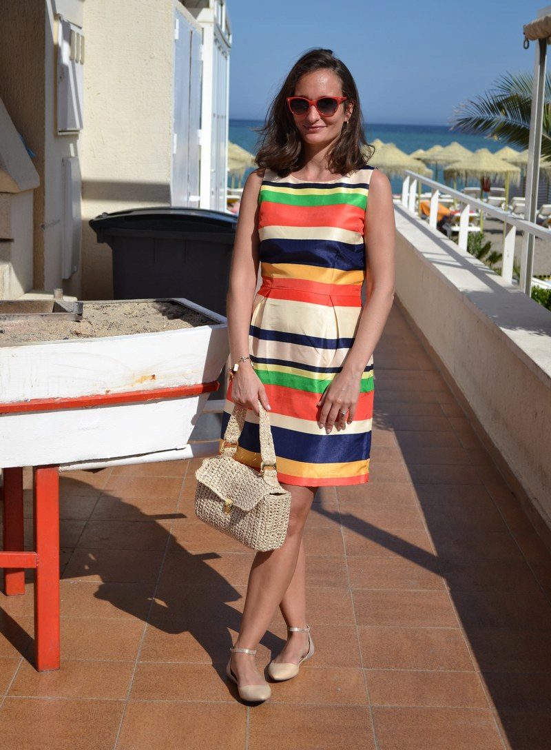 If two-color combinations seem boring to you, nothing can stop you from choosing an outfit with three or more colors. For example, dresses with stripes of different shades of pink look romantic and tender. Fun and summer-like outfit, which combines beige, terracotta, green, blue and brown stripes. No less cute yellow-red-blue print.