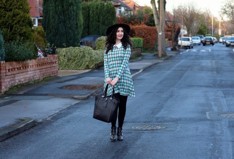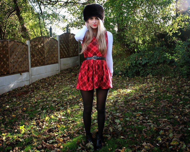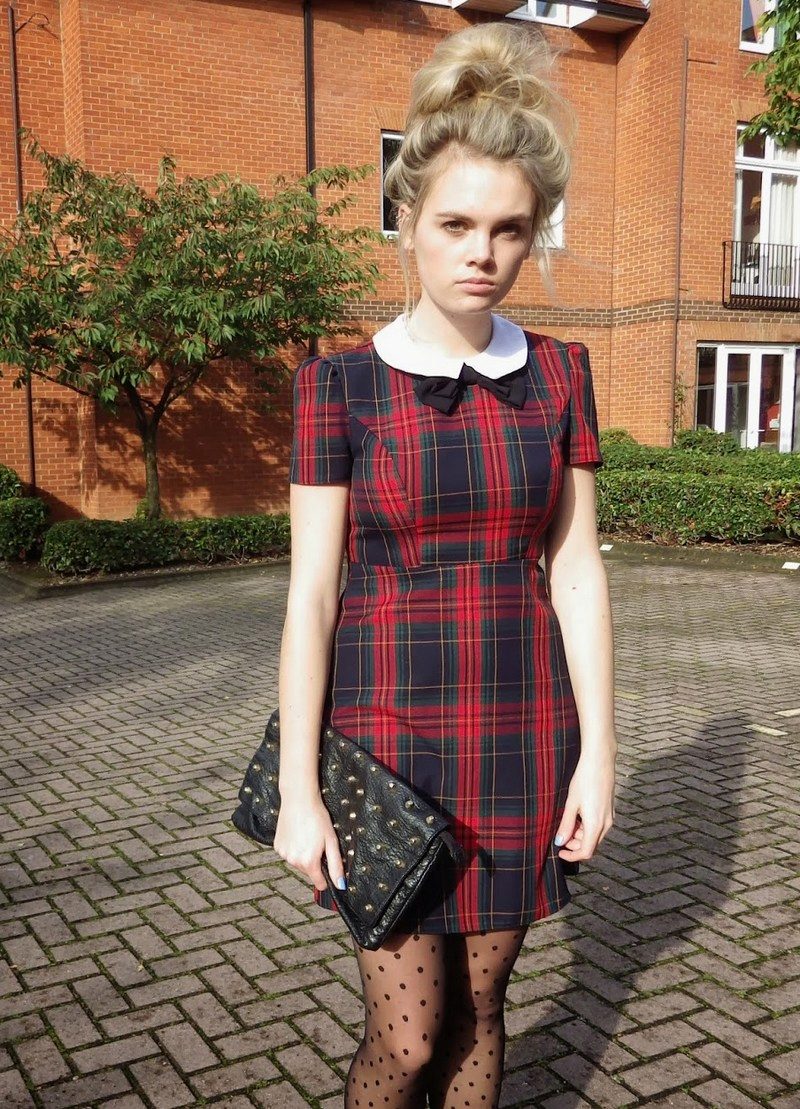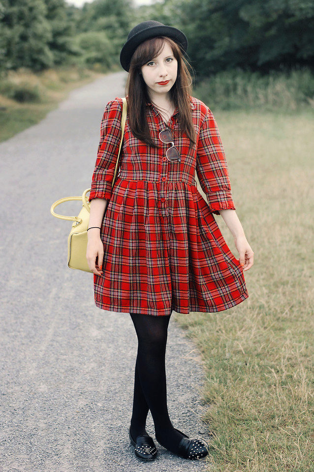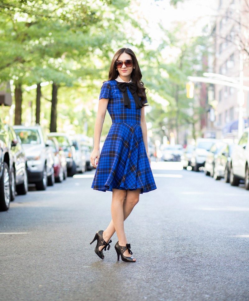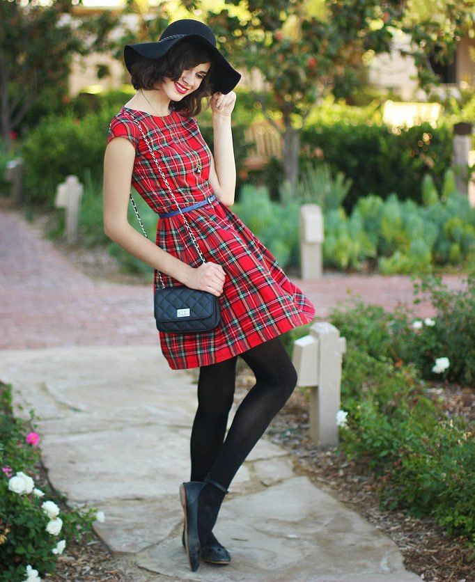 Stylish girls most often wear a plaid dress with black accessories. For example, gloves, shawl, handbag, shoes or socks look very stylish and beautiful with a checkered dress. A dress with a full skirt and sleeveless looks original, and a rounded neckline gives a special charm to the dress.