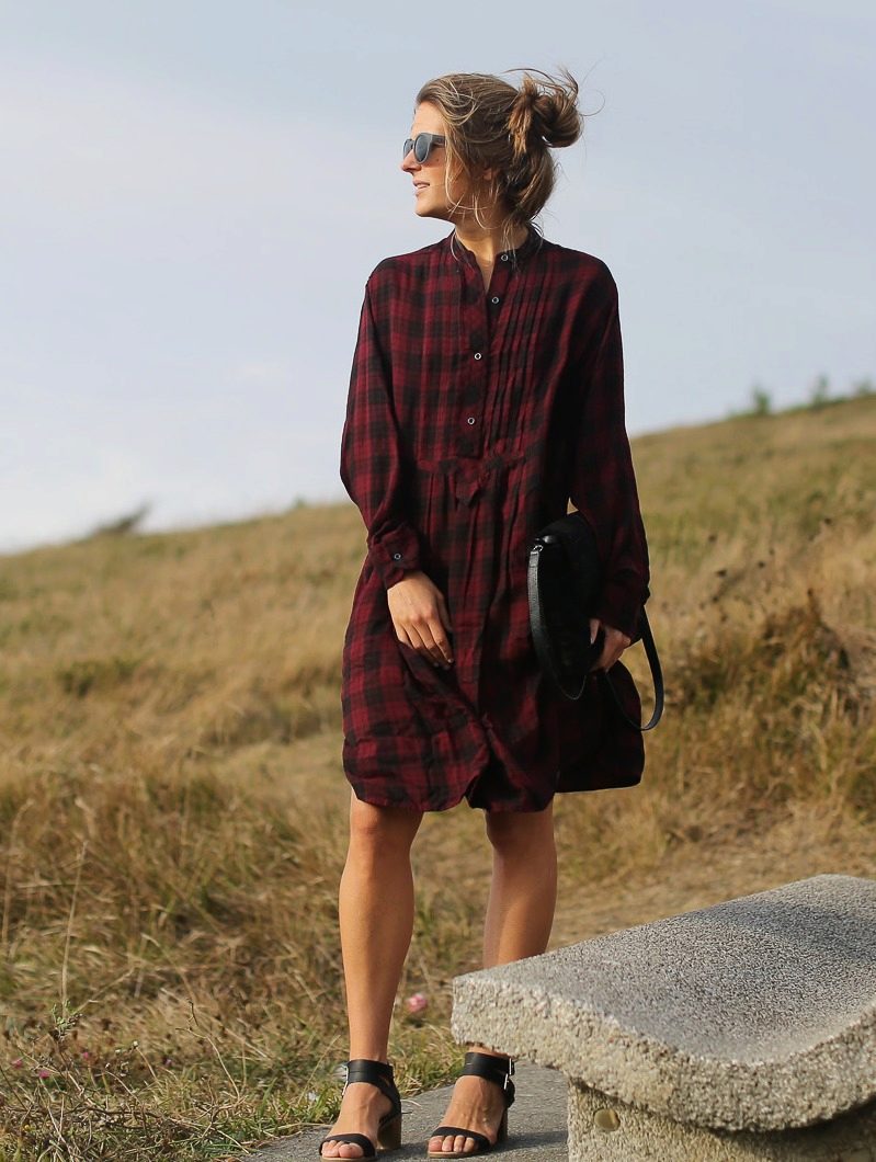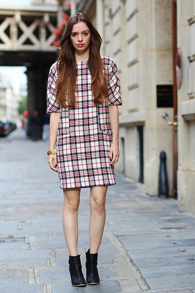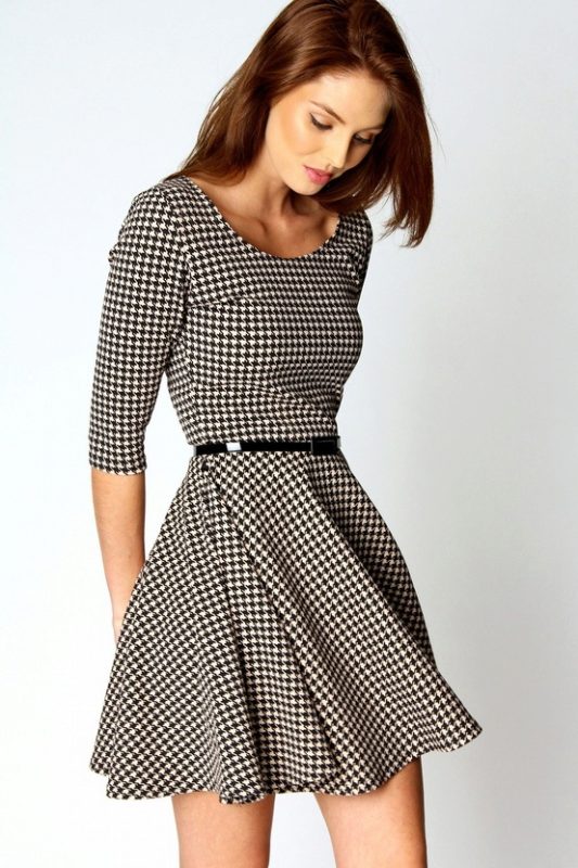 A black-and-gray check dress will be a great everyday choice for an elegant business woman. In such a dress, a deep black color is well balanced with shades of gray.