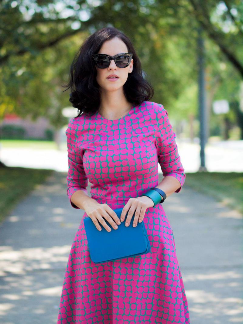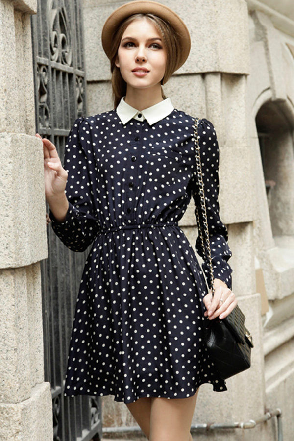 Retro style lovers often choose red and white and black and white colors of such a print for models of dresses with a full skirt. Women of fashion who prefer modern design of dresses, may well find a polka-dot dress with such a sound.