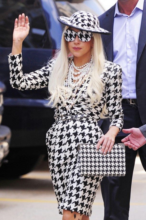 - "Goose foot" looks very contrast, so attracts attention. Clothes in such a print will be dominant in the ensemble and should be combined mainly with monophonic things.Also, this print can be combined with ornate pattern, for example, with a paisley pattern.