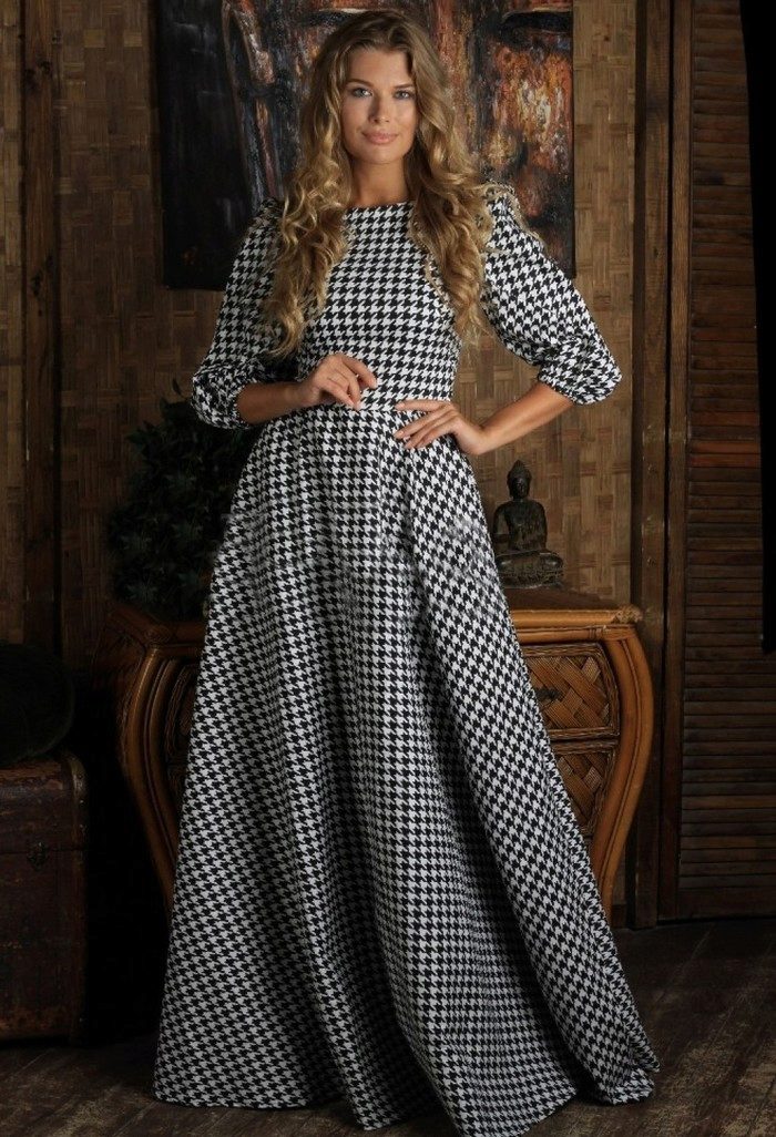 The cuts on this dress should be at a minimum, and all folds should be well fixed. If you choose a maxi dress from flowing fabric, even the smallest print “goose foot” will look out of place and blurred.