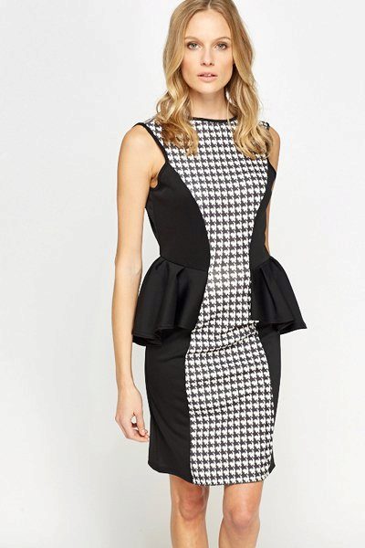 Dresses with this print are festive, cocktail, everyday and office. It all depends on the style of the product, as well as the accessories used with it. Also, there are models in which the “goose foot” is complemented by inserts of monophonic fabric. In this dress, you can influence the visual perception of the silhouette and figure flaws.