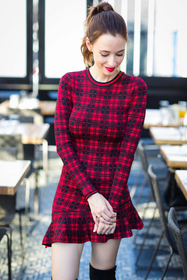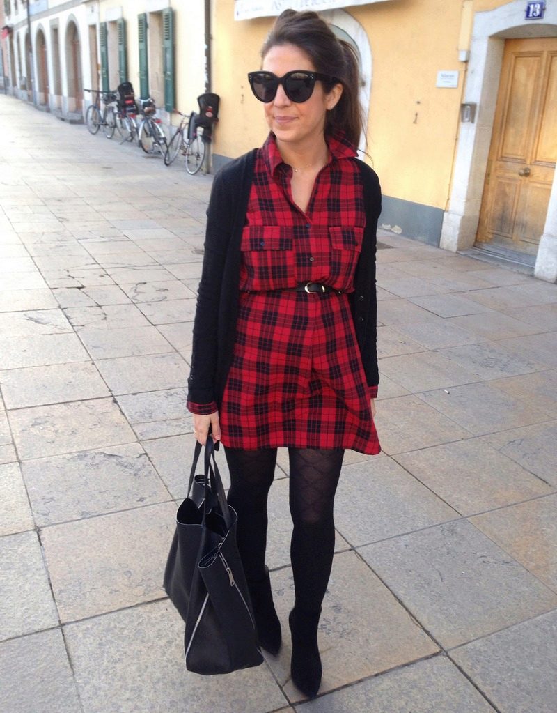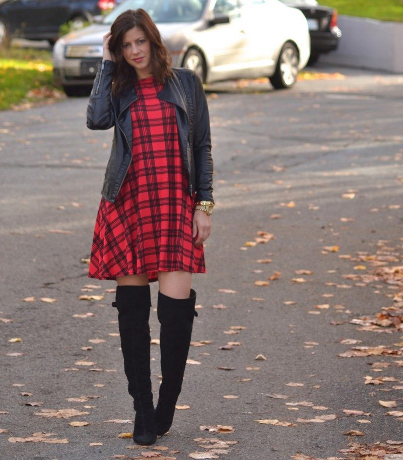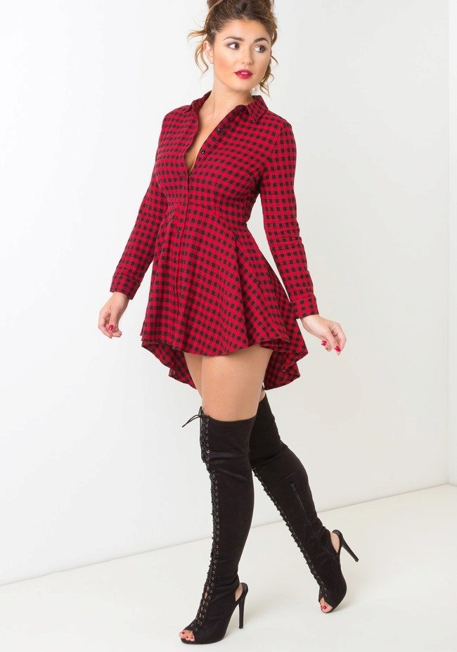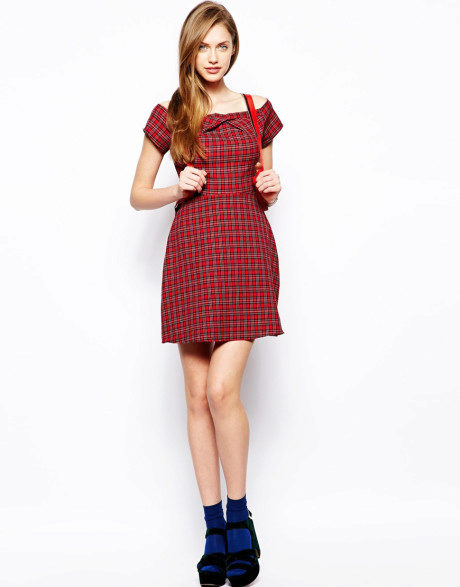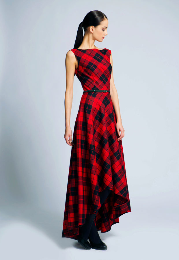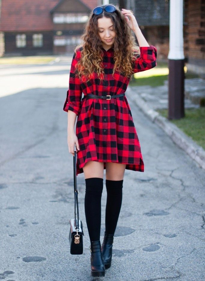 Dress in red and black cells - this is a classic of the genre. The only thing that changes is the size and cut of dresses. An important advantage of this print is that it is able to hide figure flaws. With it, you can create very different images: from a modest everyday image to a trendy evening.