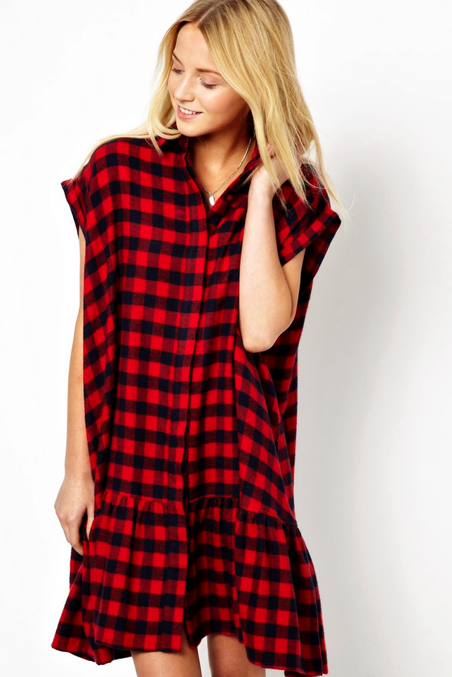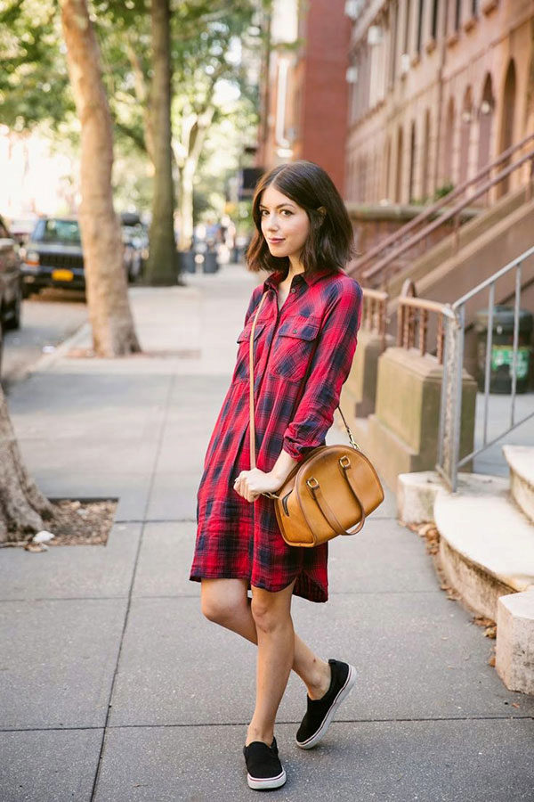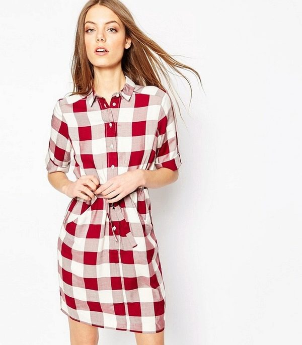 Checkered short dress at the moment is especially popular among young girls.