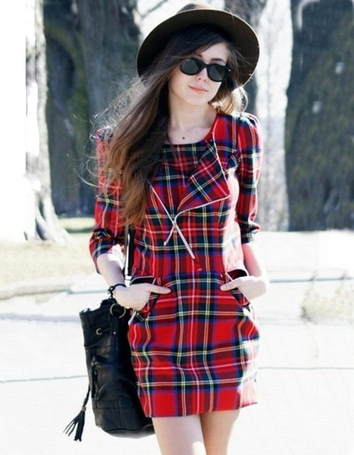 The checkered dress is suitable both for women with a perfect figure, and seeking to hide the flaws of the body. The main thing is to choose the size and location of cells.