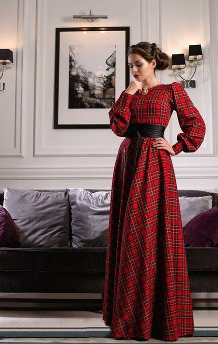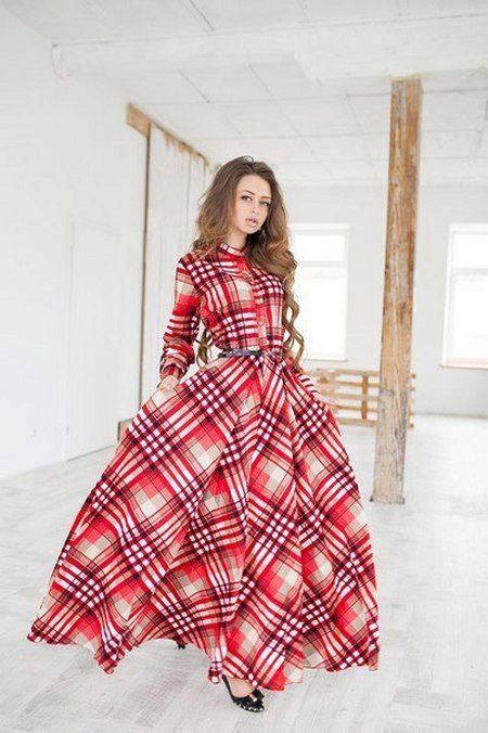 Long dresses usually prefer to wear for some important events. Contrary to this opinion, a long checkered dress can be worn not only at festive events and parties, but in everyday life. The length of such a dress should reach to the ankles so that the design itself is not lost, and at the same time it is comfortable to move in it.