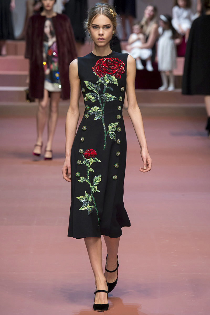 Print "roses" on the dress, it seems to me the most attractive. I really liked the Dolce Gabbana collection!