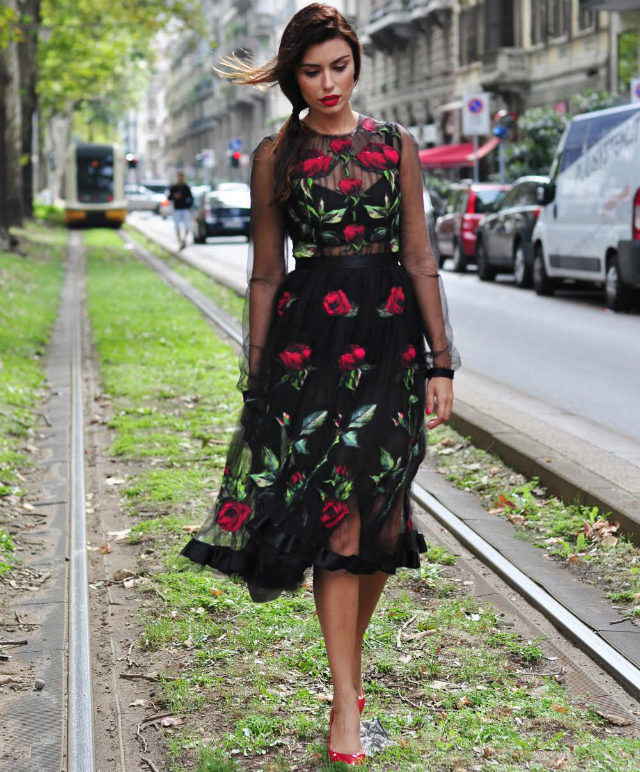 Roses are flowers that perfectly characterize the feminine nature, so the print with their image is very often used in the shows of the most famous designers. So, the famous Dolce & Gabbana collection strikes with its charm.