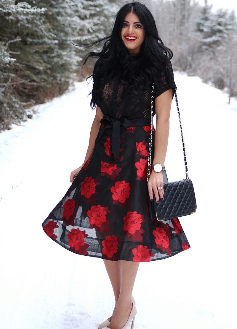 Black dress with roses