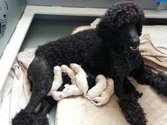 Until one month of age, young puppies feed mainly on mother's milk, however, after 1.5-2 weeks, you can start feeding the young poodle, the best choice is cow's milk with the addition of egg yolk. On the 3rd week they start to give minced meat, and on the 4th, cereals and vegetables are introduced, while starting with small doses and gradually increasing the share of these products in the pet menu. At 2 months, puppies are finally weaned from mother's milk, by this time they can already eat on their own.