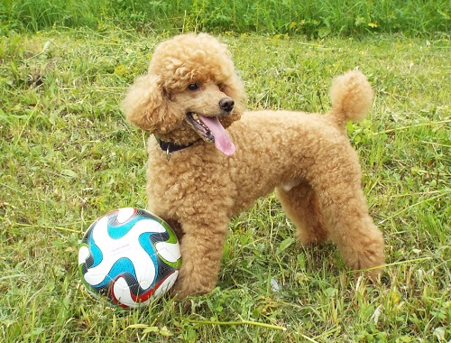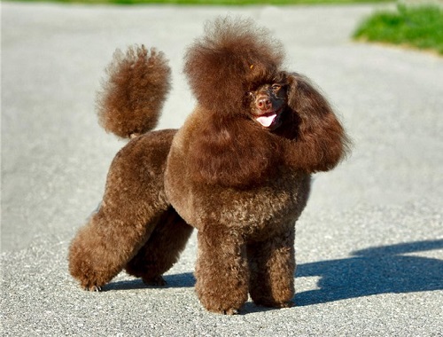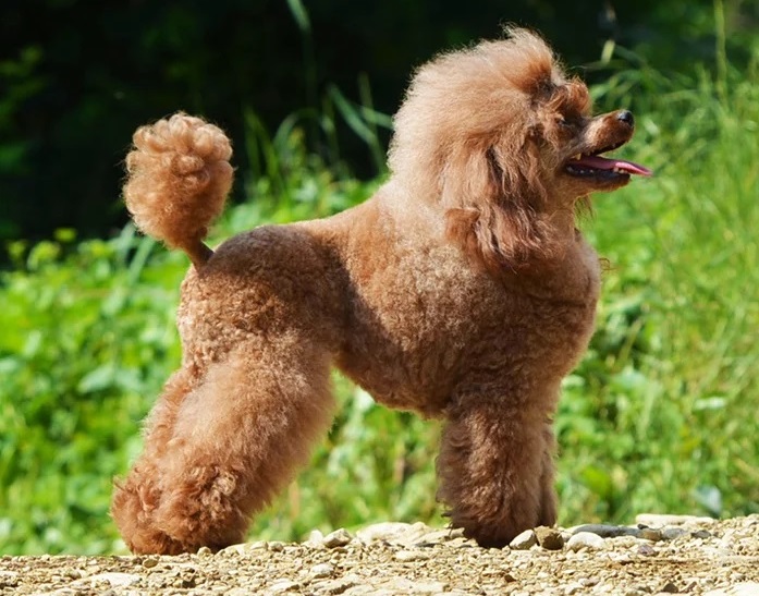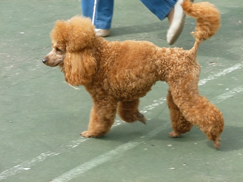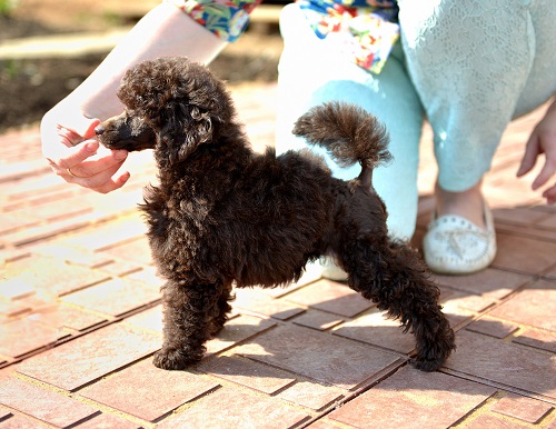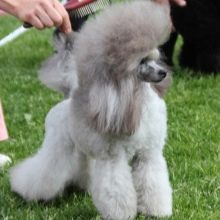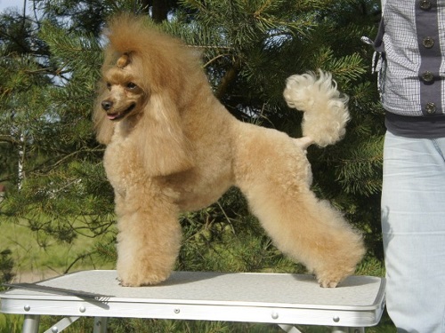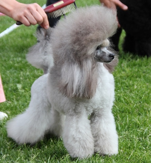 There is a standard toy poodle for exhibitions.