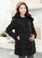 The optimal length of down jackets for pregnant women is from the middle of the thigh to the knee. Shorter models will not be able to protect the buttocks and lower back from the cold, and it will be very difficult to fasten longer, because for this you will need to bend down, and the growing tummy every day will not allow it