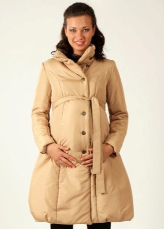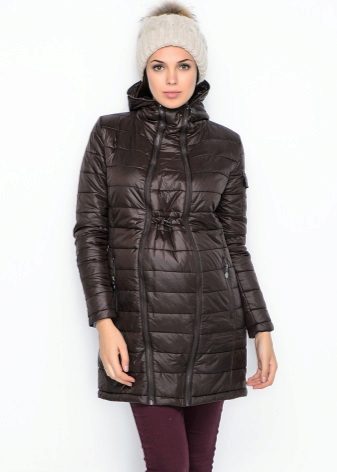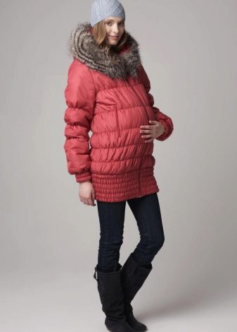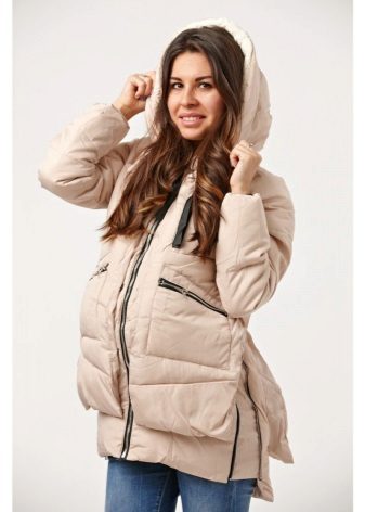A common feature that unites all jackets for pregnant women is the presence of a wide space at the level of the abdomen. This can be achieved through a special cut, rubber bands or additional snap-on inserts that add volume.