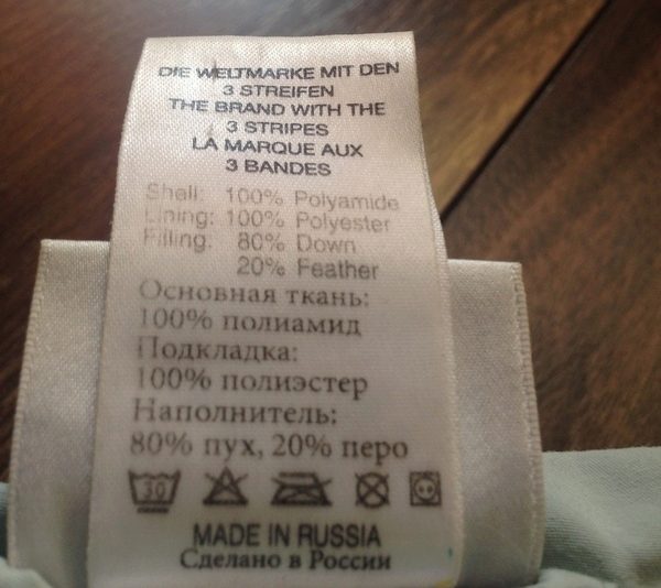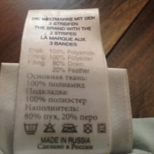 If the label says "100% down", it means that the filler is fluff. The inscription "feather" means that the filler is down + feather. "Intelligentdown" - down + synthetic filler.