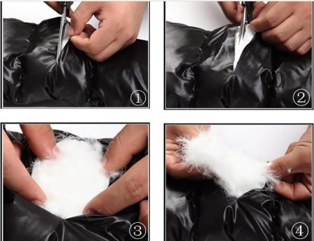 - In order for the insulation to be distributed as evenly as possible over the surface of the down jacket, it is placed in special square or rectangular blocks. Insulation should move freely inside the unit, not to prick and not form lumps.