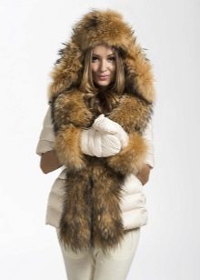 The main fur, which is used by designers - raccoon, arctic fox, less often - fox. Mouton, which is also used for decorating down jackets, can be colored to match the down jacket, for example green, or differ in color, for example, black down jacket with brown sleeves from a muton.