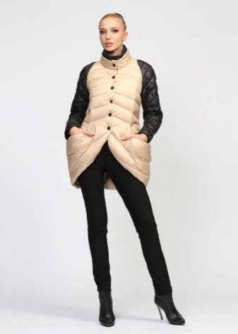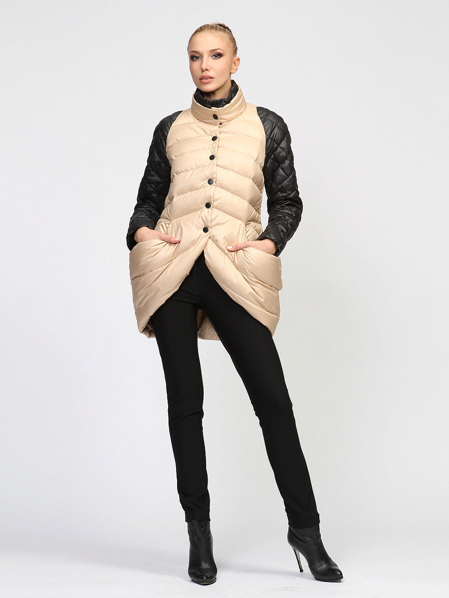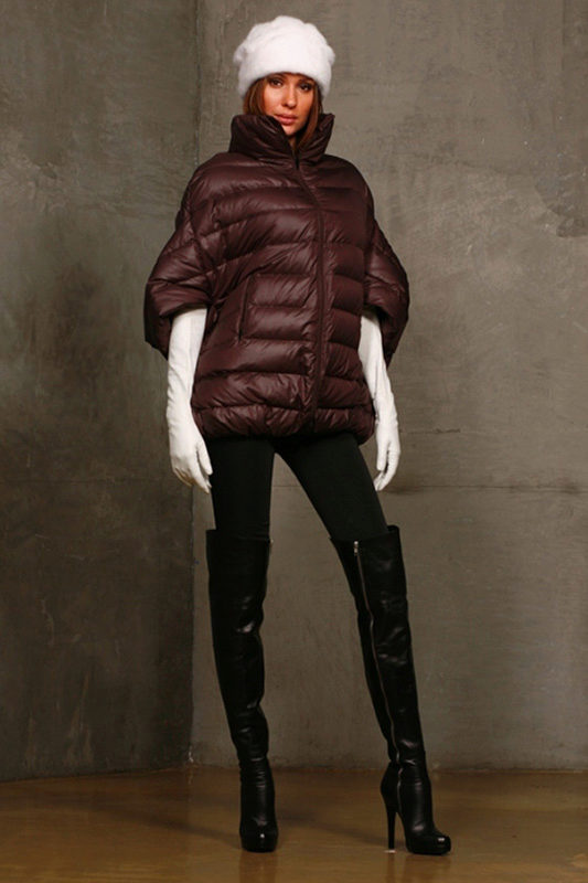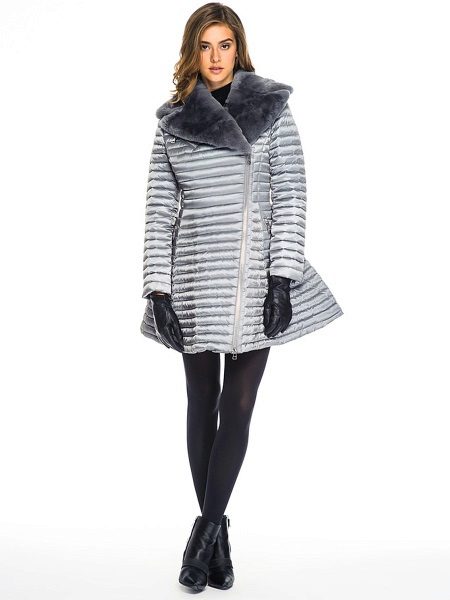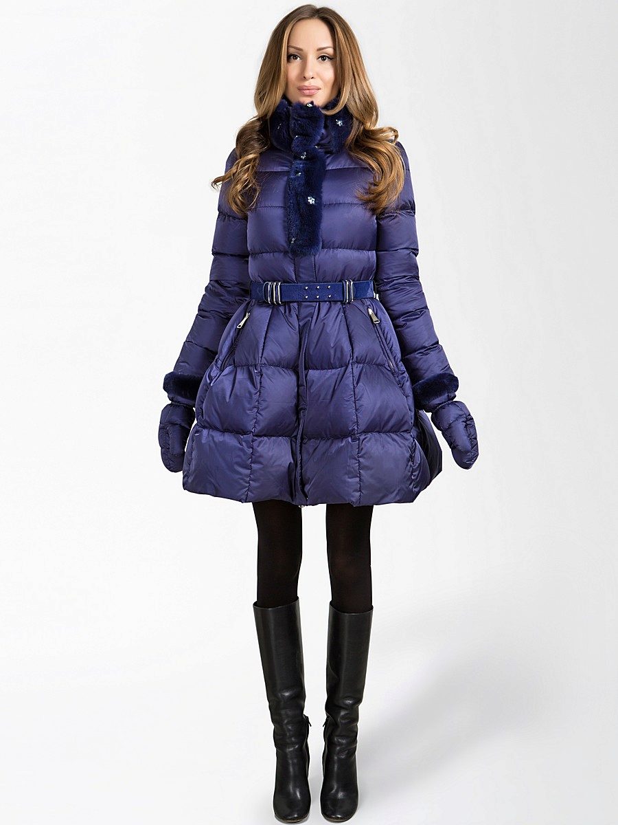 And the down jacket-coat, extended from behind and shortened to the knee in front, looks like a bell. In this jacket you will be the center of attention.