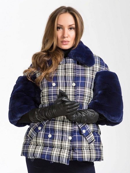 So fashionable cropped sleeves are also present in the model range of the Audrey company. ¾ or to the elbow - the sleeves are decorated with fur.