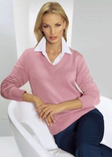 Today, a pullover is a basic piece of clothing, along with pumps, a white blouse and a pencil skirt. Current trends in fact do not make changes in its appearance.