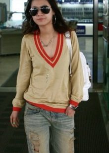 A tight-fitting pullover is advisable to be worn by ladies with a perfect figure, since such clothes emphasize figure flaws.