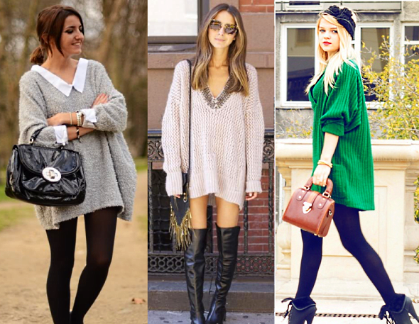 With a short pullover, tight-fitting trousers with a high waist and a light blouse or top are perfectly combined. In the event that you bought a tight-fitting model, then a tulip skirt would be perfect, as a last resort - spacious pants. Pullover dress wonderfully focuses on your forms and your personality.