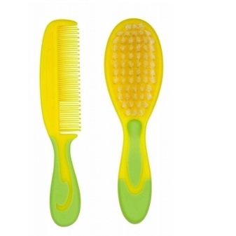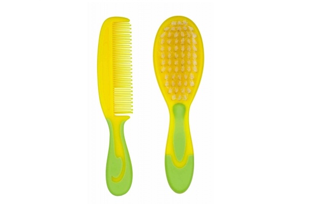 - Combs nuk. The package bundle is the same as in the last paragraph: brush and comb. However, the appearance is more attractive and ergonomic - they are comfortable to hold. There are several colors: yellow, blue, red and green.