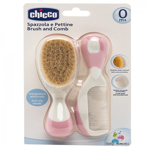 - Chicco Kit. Popular and high-quality combs. The set includes a brush with natural, soft bristles and a plastic comb with small balls at the end. The price usually varies from 600 to 800 rubles.