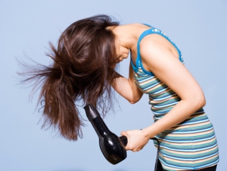 Not too short hair is recommended to be dried using a hair dryer, with his head tilted down. This will allow you to create a small amount from the roots, which will be very useful in the process of creating a magnificent pile.