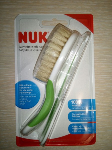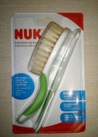 - Nuk-in many properties similar to Chicco. The set includes a comb and a brush with natural bristles. The handles are rubberized. Kits are available in multiple colors. Suitable for children from 0 to 12 months.