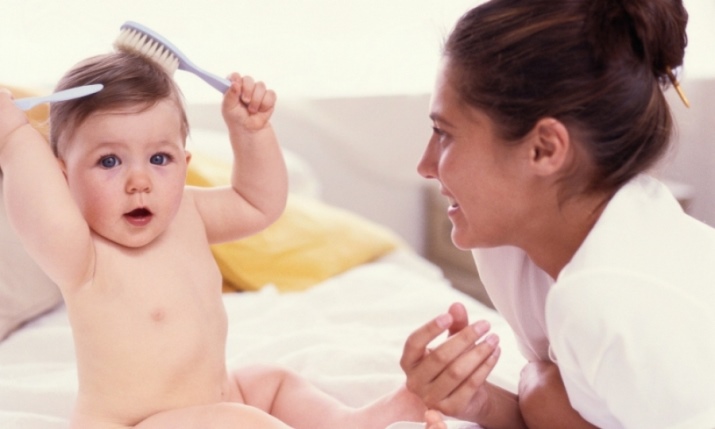 - With the help of special children's brushes, mother can make the baby a head massage. It improves skin blood circulation and stimulates hair follicles. Thanks to this massage, the growth of the baby’s first hair is accelerated.