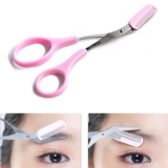 To control the length of the eyebrows will allow the model of scissors for cutting eyebrows with a comb. It is indispensable for adjusting the shape and length of the eyebrows. Curved scissors are very convenient to use. Comb allows you to limit the length of the hairs, so as not to cut off the excess. During the haircut, you need to comb the hairs up and cut off the protruding, taking into account the desired shape.