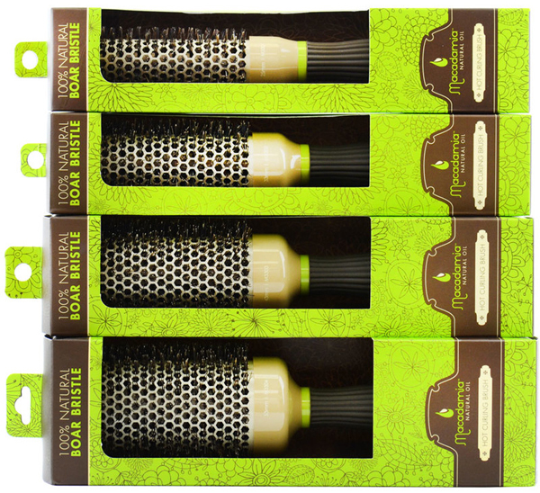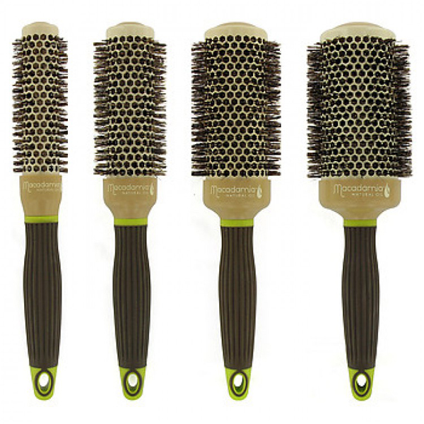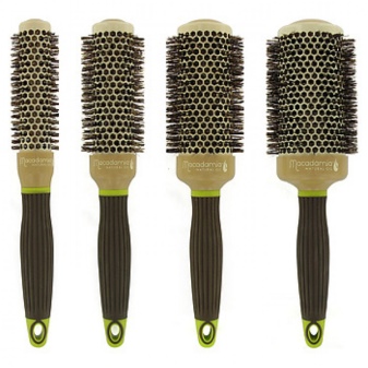 Brashing is like a blowing brush. The difference lies in the holes on the base, which allow to achieve the desired shape of the hairstyle and its volume. Macadamia brasings are available in four diameters: 5.3 and 4.3 cm are designed for long hair, 3.3 cm for medium length hair and 2.5 cm for short strands and styling bangs.