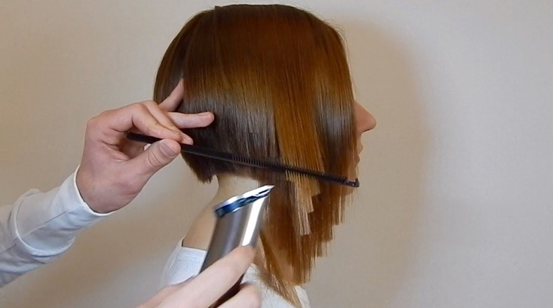 - After completing the cutting of the lower curls, it is necessary to remove the clips, re-distribute the hair into identical squares and profile.